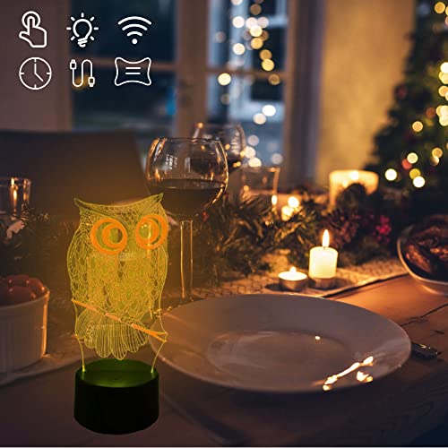 RANJIMA Luce notturna a forma di gufo, lampada 3D, che cambiano colore, dimmerabile, luce notturna a LED, lampada da notte con telecomando, per bambini gufi decorazione di Natale per ragazze e ragazzi