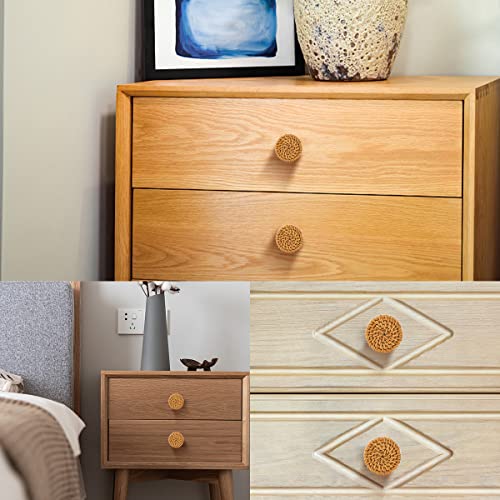 Bottoni per mobili: questi pomelli in rattan sono realizzati con bottoni in legno e rattan naturale combinati con bottoni in legno. Design unico in rattan, si integra perfettamente nel tuo stile di casa, adatto per pomelli, cassetti comuni, credenze, armadietti, ecc.