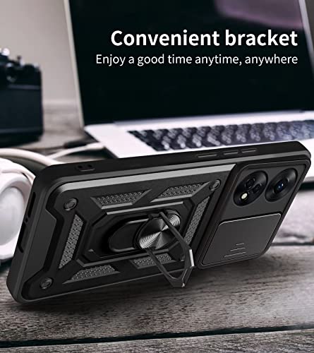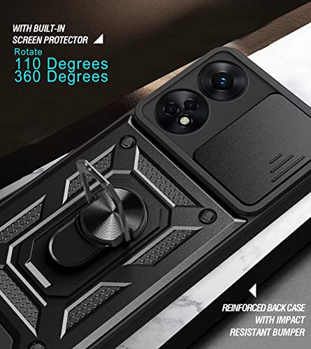 RankOne Custodia per Cellulare OPPO Reno 8T (6.43" Inches) PC Anello Armor Push Window Anti Drop Custodia per Cover - Nero