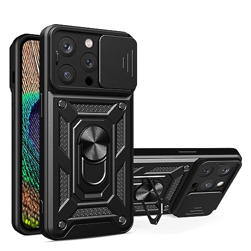 RankOne Custodia per Cellulare iPhone 15 Pro (6.1" Inches) PC Anello Armor Push Window Anti Drop Custodia per Cover - Nero