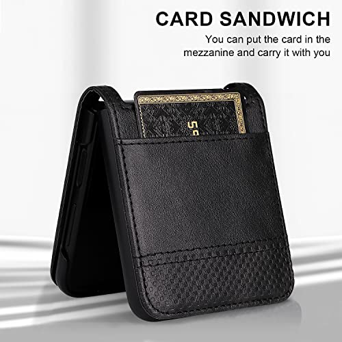 RankOne Custodia A Portafoglio per Samsung Galaxy Z Flip3 5G 6.7" Custodia, Custodia in Pelle con Porta Carte Nero