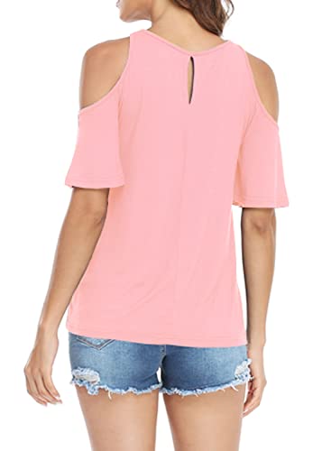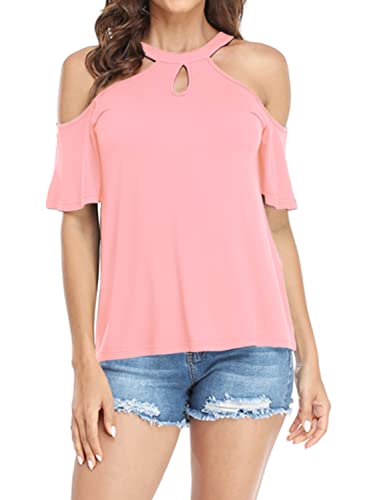Ranphee T Shirt Donna Manica Corta a Spalla Fredda Camicia Estive Girocollo Magliette Rosa Corallo L