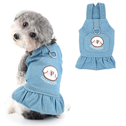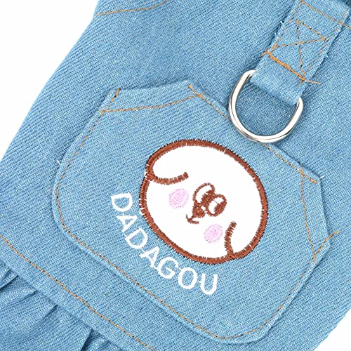 Ranphy Pettorina in denim per cani di piccola taglia e ragazza, vestiti per cani con tasche con stampa a cartoni animati per cuccioli di primavera estate gonna per gatti con anello a D, azzurro, XL
