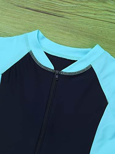 Ranrann Costume da Bagno Bambini Unisex Rashguard Muta da Sub Immersione Muta Shorty in Neoprene Maniche Corte Surfing Snorkeling Mare Piscina Spiaggia Swimsuit Navy Blue&Sky Blue 3-4 Anni