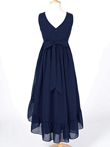 Ranrann Vestito Lungo Bambina Elegante Principessa Abito Chiffon da Sera Matrimonio Ragazze Abito da Sposa Senza Maniche 4-16 Anni Blu Scuro 13-14 Anni