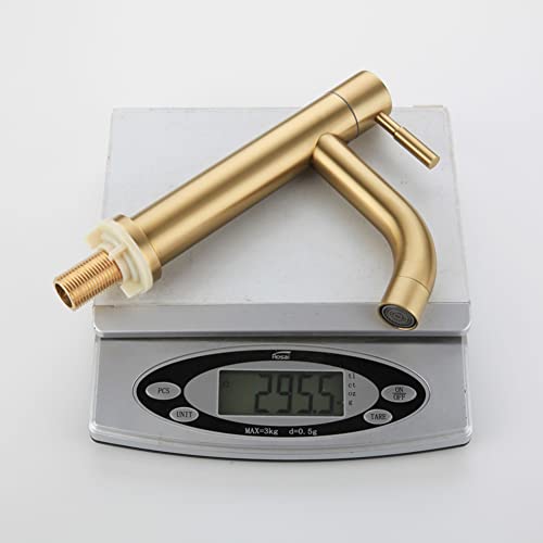 RANRAO Rubinetto per lavabo da bagno, in oro spazzolato, lavabo singolo foro con manico a freddo per doccia e lavandino