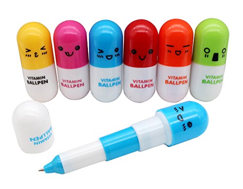 Ranvi Penna a sfera retrattile di forma della pillola 24pcs, emozione sveglia, fronte sorridente, penna di palla del fumetto, colore casuale