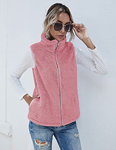 Rapbin - Gilet in pile da donna, effetto peluche, per autunno e inverno, caldo, senza maniche, leggero, casual, tinta unita, Gilet rosa chiaro, S