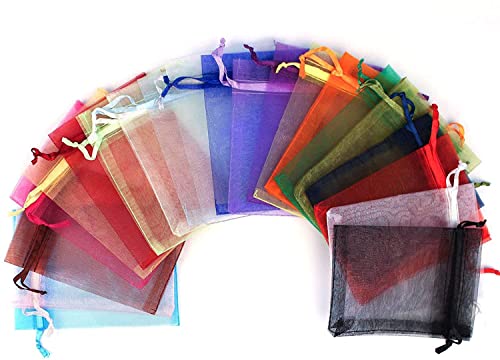 Rapecott 9x12cm 200pz Colore Organza coulisse sacchetti regalo, sacchetti tulle portaconfetti, confetti comunione, bustine per gioielli, compleanno natale bomboniere sacchetti piccoli regalo.