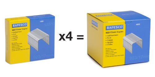 Rapesco S92317Z3 - Punti metallici zincati, 923/17 mm, tipo 23, confezione da 4 x 1000 pezzi, colore: Metallizzato