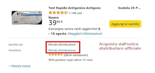 Test Rapido Antigenico Antigene COVID-19 Scatola 25 Pezzi Sars-Cov-2 nCov CLUNGENE Clongene Lungene Tampone Rino Faringeo Nasale Uso Autodiagnostico Self Home Test Auto Diagnosi Coronavirus