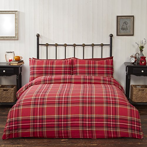 Rapport Home Rapport Campbell-Set Copripiumino 100% Cotone Spazzolato, per Letto King, Colore: Rosso, Size