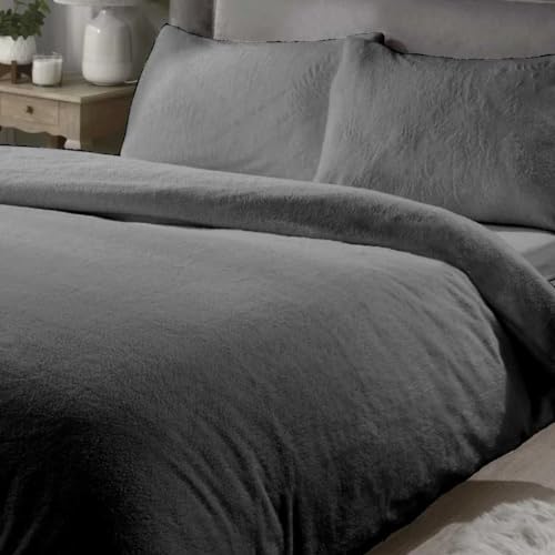 Rapport Home Rapport Teddy Bear - Set copripiumino per letto matrimoniale, super morbido, in poliestere, antracite