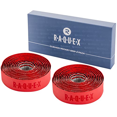 Raquex Cuscino in PU Hockey Stick Grip 2 Pack: Super Grippy, Soft & Absorbent, Retro autoadesivo, lunghezza extra lunga, confezione regalo in cartone riciclabile (2 x Rosse)