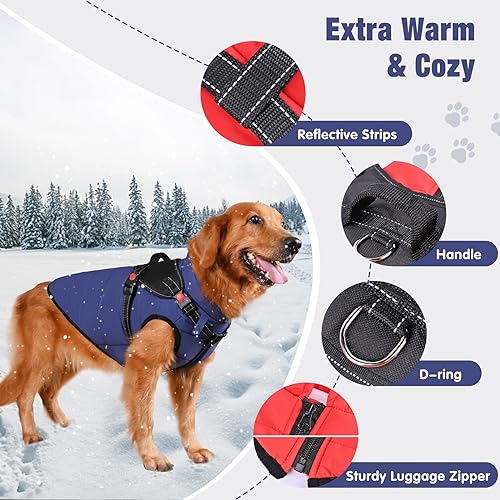 【Cappotto impermeabile del cane nella neve】- Realizzato in tessuto impermeabile speciale e di alta qualità, il cappotto del cane può efficacemente impedire all'acqua di penetrare lo strato di cotone e fodera all'interno dei vestiti anche in caso di pioggia intensa. Con morbida fodera in cotone, la giacca del cane è confortevole e amichevole per la pelle, rendendo i vostri animali domestici caldi e disposti a indossare.