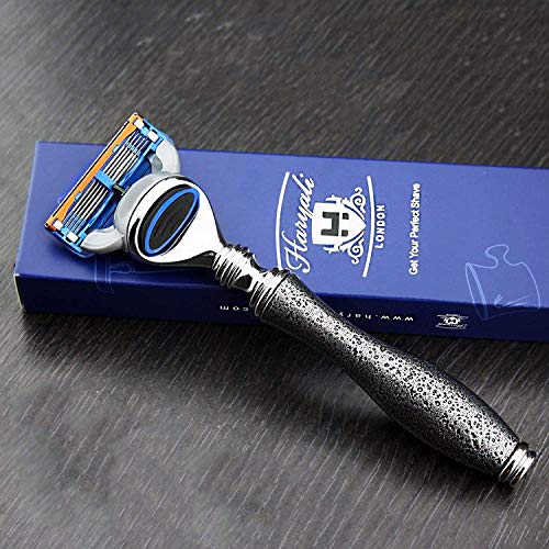 Set di rasatura premium con 5 lame per rasoio a cartuccia per uomo, con manico in argento anticato, per lui