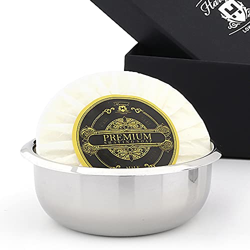 La ciotola da barba è realizzata in acciaio inossidabile di alta qualità con finitura cromata. Il sapone da barba è un sapone duro che viene montato nella schiuma con l'aiuto di un pennello da barba. Inoltre, fornire protezione e lubrificazione per il rasoio.