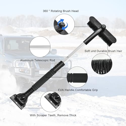 ❄️【Spazzola da neve per auto 2 in 1】La nostra spazzola da neve per auto è composta da un raschietto per il ghiaccio, una testina rotante per la neve e un'asta telescopica. Puoi rompere facilmente il ghiaccio spesso con il raschietto, quindi spazzare via la neve con la testina della spazzola.