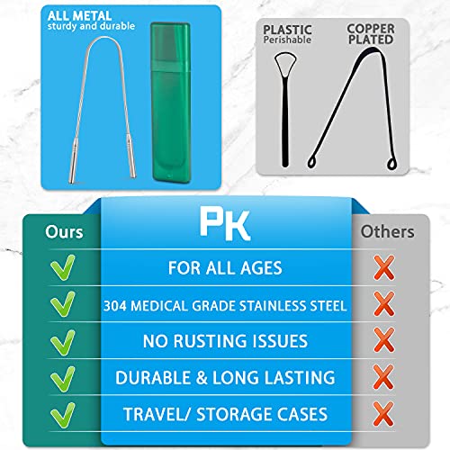 [Antiruggine, 100% acciaio inossidabile] - Utilizzare un pulitore raschiatore per raschiare la lingua è così facile che è pazzo che tutti non utilizzano un pulitore raschietto. Ogni raschietto per lingua presenta una linea curva per adattarsi al tuo tounge. Questi raschietti per lingua sono durevoli e durevoli. Inoltre, i raschietti per lingua saranno facili da pulire e disinfettare, non arrugginiscono e non si rompono come gli altri.