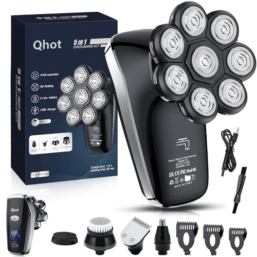 Qhot Rasoi per La Testa per Gli Uomini, Rasoio Elettrico con Testa Impermeabile Aggiornata per Uomini Calvi (S8)