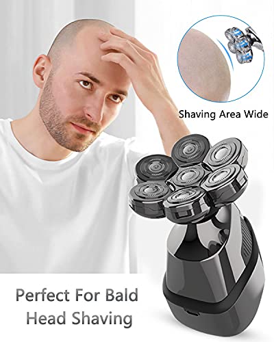 5 in 1 Rasoio Barba Elettrico Uomo Professionale, Rasoi Regolabarba, per Testa Calva, Rasoio Naso, Bagnato e Asciutto, Impermeabile IPX6, Display LCD Intelligente, USB Ricaricabile