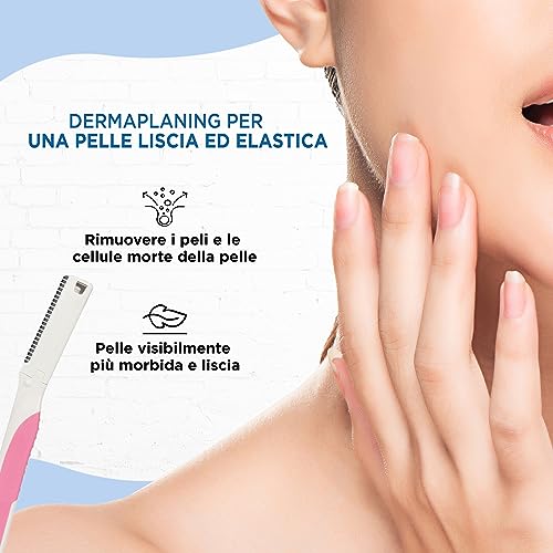 FURR Rasoio viso donna | Rasoio viso riutilizzabile | Rasoio sopracciglia donna | Dermaplaning Viso | Rasoio di sicurezza | rasoio donna viso | lametta sopracciglia- Confezione da 4