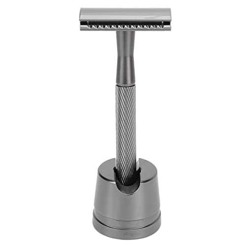 Rasoio a Doppio Bordo da Donna, Rasoio di Sicurezza da Uomo in Lega di Zinco Rasoio da Barba Portatile con Manico in Ottone con Base per la Cura del Viso, Adatto a Tutte le Lame di Rasoio a(Nero)
