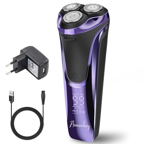 Rasoio Elettrico Uomo a 3 Aggiorna le lame, Rasoio elettrico Wet & Dry, Ricaricabile, Rasoio Senza Fili, Rasoio Barba a Tagliabasette a scomparsa, Idea Regalo,FK-375i Viola