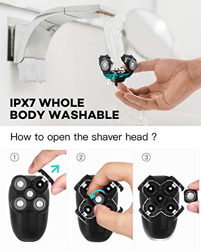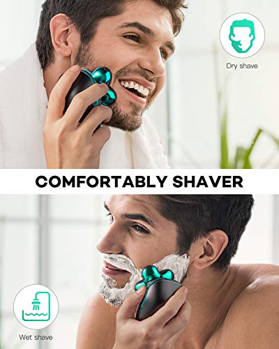 Rasoio Elettrico Uomo, ATEEN Rasoio Elettrico Barba Uomo Impermeabile, 5 Testine Rotanti per Capelli Barba Naso Orecchie e Viso Pulito, Rifinitore a Scomparsa 4 in 1 Kit