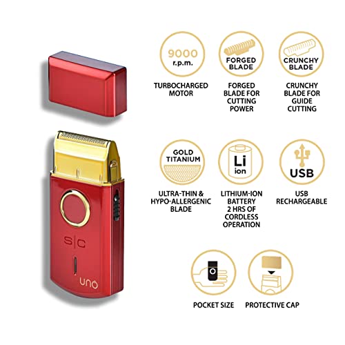 Rasoio Elettrico Barba e Capelli Stylecraft Uno by Gamma Più, Rasoio Barba Elettrico Uomo Senza Fili, Autonomia 2 Ore, Rasoio da Viaggio Compatto e Portatile, Ergonomico, 9.000 RPM (Rosso)
