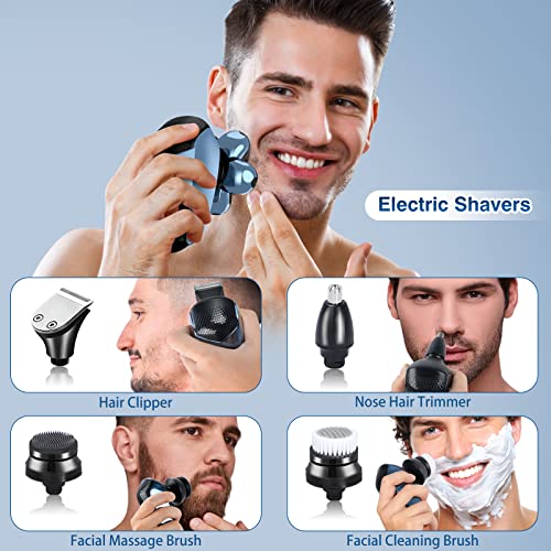 Rasoio Elettrico Barba Uomo, 5 IN 1 Impermeabile Rasoio Elettrico Capelli, 6 Testine Rotanti con Wet& Dry e USB Ricaricabile, Trimmer Barba per Barba Naso Orecchie e Viso