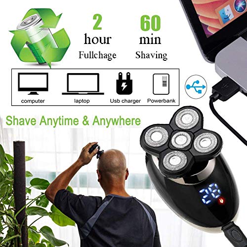Rasoio Elettrico Barba Uomo, RINBO 5 in 1 Kit Rasoio Barba Wet&Dry, 5D Rasoi a 5 Testine Rotanti, Testa Calva Regolabarba USB Ricaricabile LED, Trimmer per Naso ed Orecchie, Impermeabile al 100% IPX7