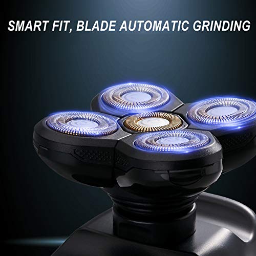 ¡¾5 testine di rasoio flessibili¡¿ Le 5 testine di questo rasoio rotante fluttuano su e gi¨´, si adattano idealmente alla forma della testa e del viso, il sistema di taglio a 5 lame e le testine flessibili 5D Forniscono una rasatura liscia e veloce ogni volta e cattura pi¨´ peli a ogni passata per una rasatura pi¨´ rapida e liscia.