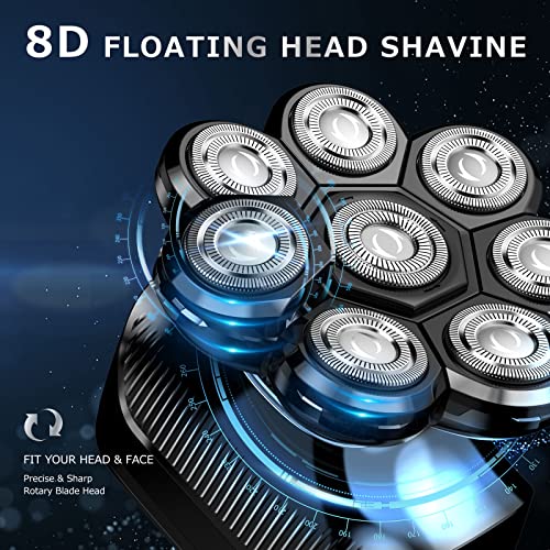 Rasoio Elettrico Testa Calva Uomo, Shtepime 10-IN-1 Rasoio a testa Calva 8D Rasoio Rotante da Uomo IPX7 Impermeabile Set per la cura della testa calva con Rifinitore di Precisione, Display a Led