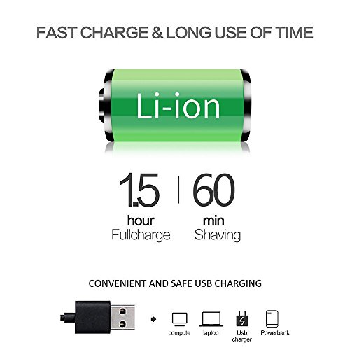 Ricarica rapida/senza fili USB - Goditi una comoda ricarica a casa o in viaggio/batteria al litio potente e di lunga durata per portabilità in viaggio. Quando ti raserai puoi vedere quanto tempo puoi ancora rasarti e dopo la rasatura puoi vedere il tempo che hai rasato. È molto bello
