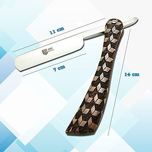 SMI - Rasoio a Mano Libera Professionale Rasoio dritto in acciaio Rasoio Barba Uomo Manuale Rasoio Barbiere a Mano Libera Cut Throat Rasoio + Custodia (Rasoio dritto legno - 1211)