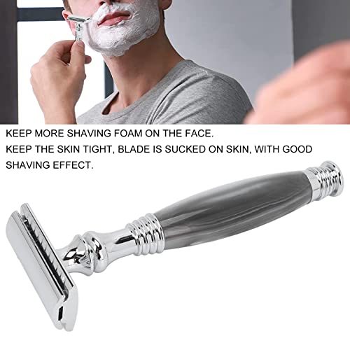 Rasoio di Sicurezza da Barba per Uomo, Rasoio di Sicurezza a Doppio Bordo Pelle Sensibile Manico Lungo, Cura Manuale di Pulizia del Viso Strumento di Rasatura Tradizionale con Supporto di Ricambio per