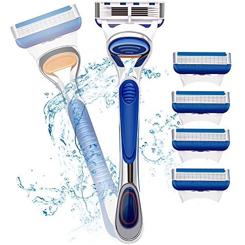 Rasoio di Sicurezza,impugnatura in gomma, con Pacchetto da 4 lame, Buono per il viaggio e la casa