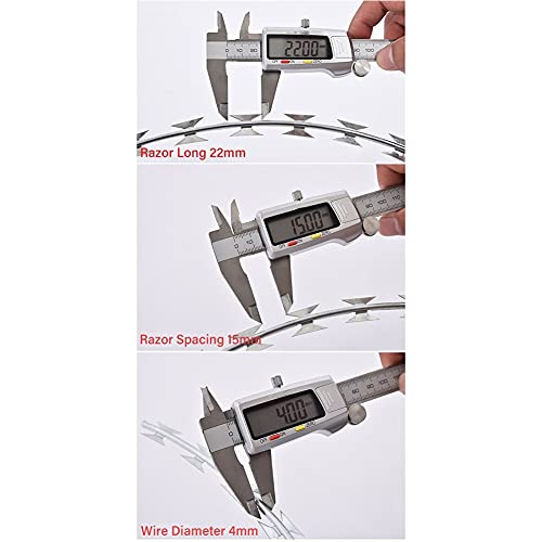 DESIGN DEL FILO DI RASOIO CON LAME: la bobina si allunga come una "aderenza" e può essere avvolta intorno alla parte superiore della recinzione del giardino per una maggiore sicurezza. Il design a lame impedisce agli ospiti indesiderati di entrare nel tuo giardino.