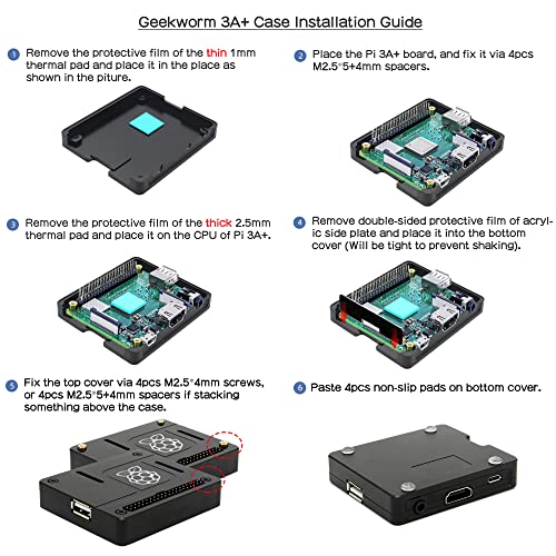 【Packing List】1 x CNC Aluminum Case, 2 x Thermal Tapes, 4 x Rubber Feet, 1 x Screws Pack (Note: the Raspberry Pi board is not included in the packing list.)