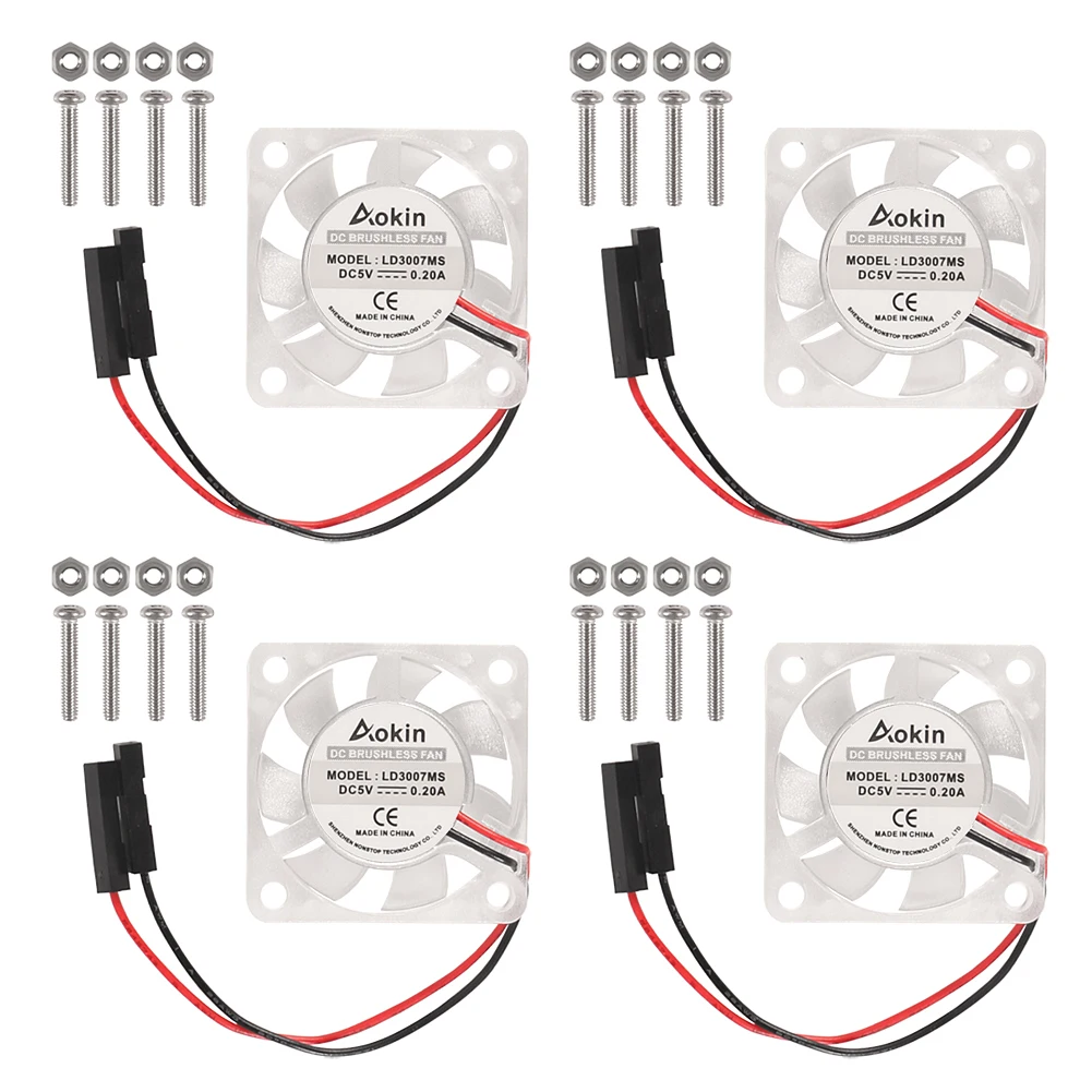 4PCS Raspberry Pi Cooling Fan Brushless 30x30x7mm 3007 Fan CPU 3.3V 5V Cooling Fan for Raspberry Pi 4 Model B, 3 B+, Pi 3