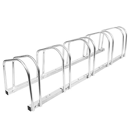 Rastrelliera Biciclette 5 Posti, Porta Biciclette da Terra per Pneumatici Inferiore a 55 mm, Supporto Bici da Terra, Garage Biciclette da Esterno, Installazione a Pavimento e Parete (130*33*33,7 cm)