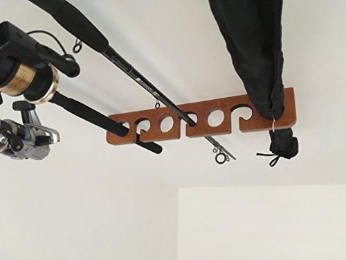 Rastrelliera in legno per canne da pesca, montaggio a soffitto (personalizzabile)