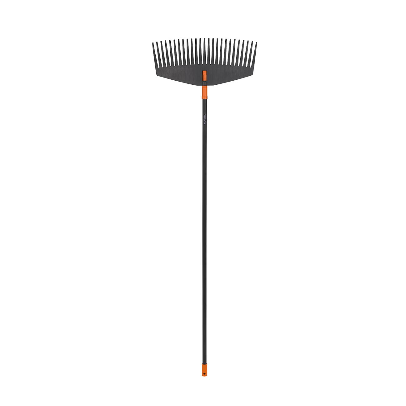 Colore nero. Ideale per rastrellare e arieggiare. Adatto a diverse attività grazie alla sua misura media, per lavori in aree più piccole come attorno ad alberi o sotto i cespugli. Attrezzo in fibra di vetro e manico in acciaio, resistente e durevole nel tempo, leggero ed ergonomico. Manico in alluminio leggero e resistente. Denti resistenti e adatti a terreni irregolari