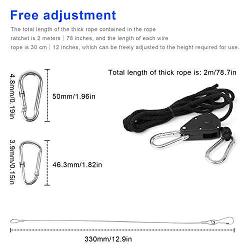 Rope Ratchet Ganci, DEANKEJI 1/8 inch Gancio a Cricchetto Regolabilecon Gancio per Fune Metallica a 4 ganci, per Lampade a Sospensione a LED, Crescere Pianta Lampada