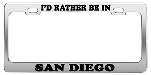 I'D RATHER BE IN SAN DIEGO License Plate Frame Tag Holder Car Accessories Gift