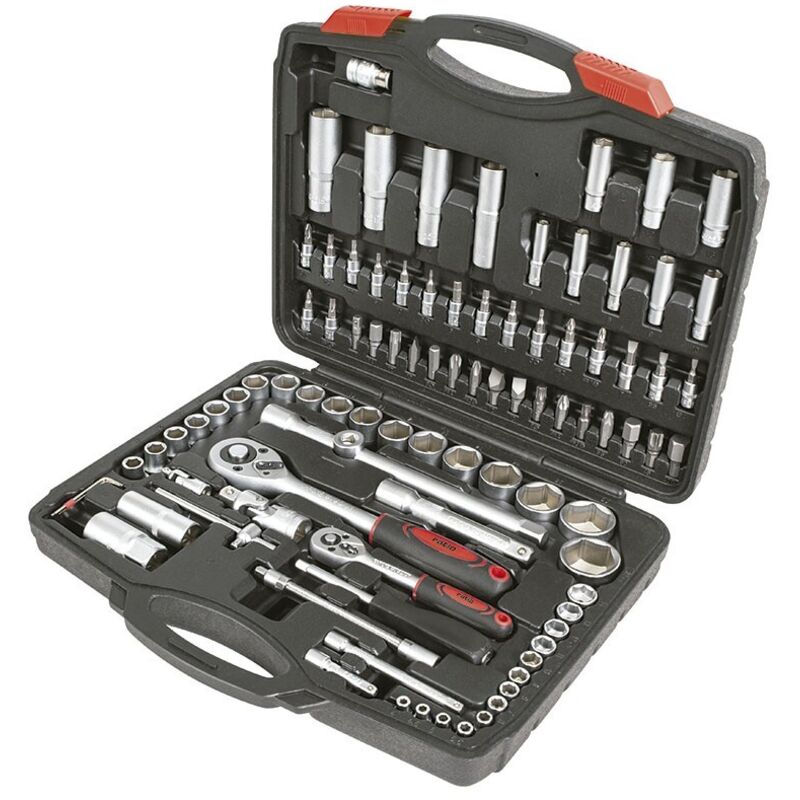 Acciaio satinato al cromo-vanadio. Tazze da 1/4" e 1/2" con sistema di bloccaggio ed espulsore Locksystem.