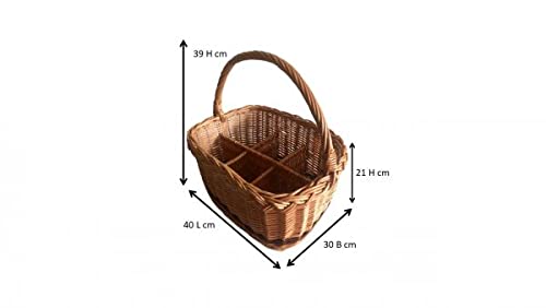 Rattano - Cestino portabottiglie in vimini naturale, con maniglia per 6 bottiglie