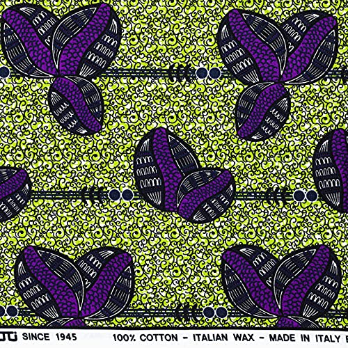 Ratti - Premium Wax Verde Acido Viola, Tessuto 100% Made In Italy, Disegno Tradizionale Africano, 100% Cotone - 5,48 mt (6 Yard)
