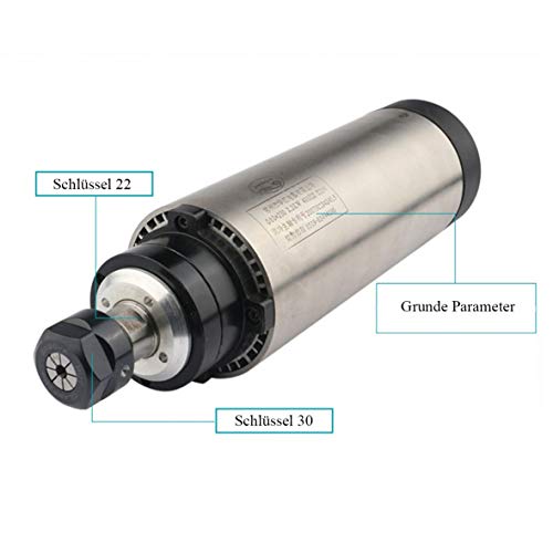 Motore a mandrino: potenza: 1,5 kW, tensione: AC 220 V, corrente: 6 A, frequenza: 0 - 400 Hz, velocità: 0 - 24000 giri/min, precisione: 0,003 - 0,005, eccentricità da: meno di 0,05 mm